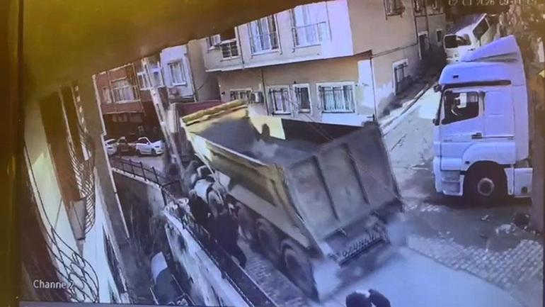 Kaza anı güvenlik kamerasına yansıdı. Görüntülerde hafriyat kamyonunun yokuştan kayarak kaldırıma çıktığı ardından aydınlatma direğine çarptığı anlar görülüyor. Şoförün kamyonu durdurmaya çalıştığı sırada hayatını kaybettiği anlar da görüntülerde yer alıyor.